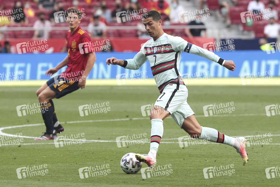 Pau Torres und Cristiano Ronaldo beim Freundschaftsspiel Spanien gegen Portugal (0::0) im Wanda Metropolitano Stadion. Madrid, 04.06.2021