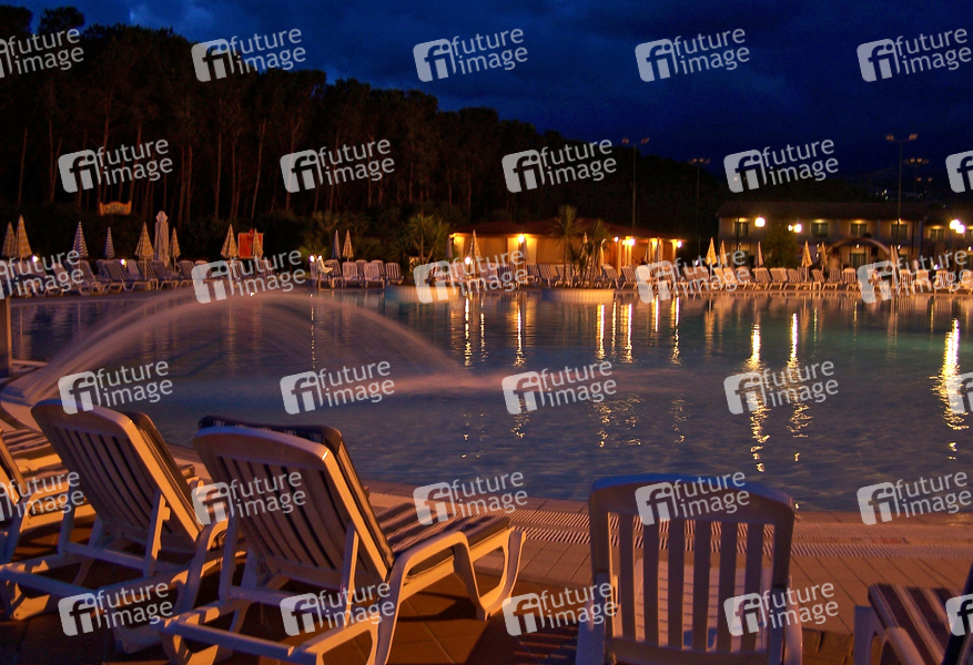 Liegestühle, Abendstimmung, Schwimmbad