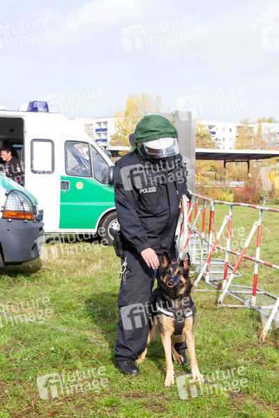 Politik, Asylbewerber, Demo, Demonstration, Protest, Linke, Antifaschisten, Polizei, Tier, Hund, Polizeihund