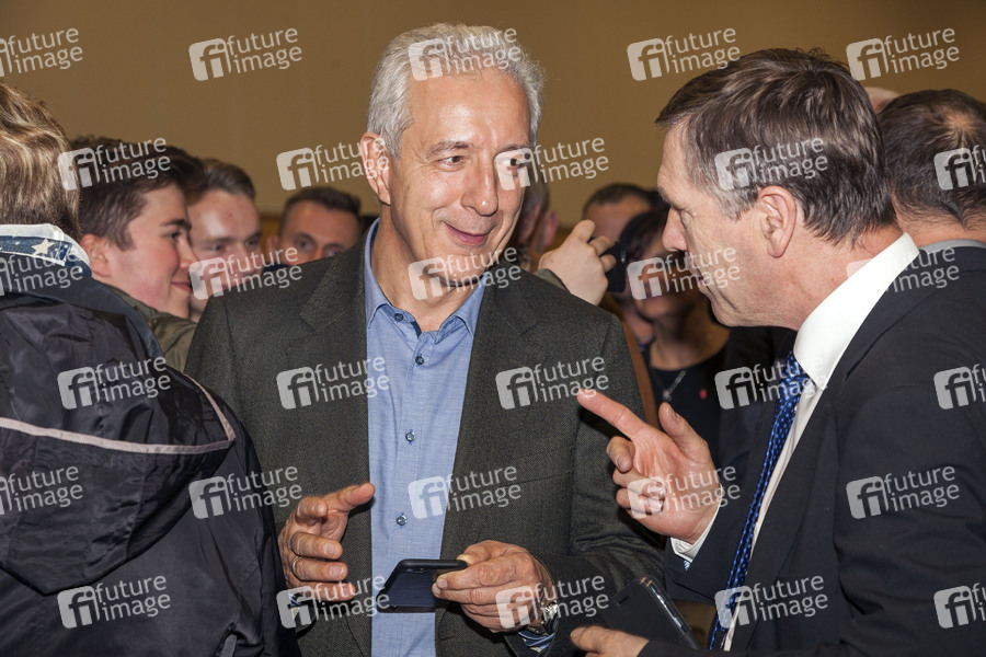 Stanislaw Tillich und Aloysius Mikwauschk beim 27. Politischen Aschermittwoch in der Oberlausitz in der Mehrzweckhalle am Schützenplatz. Bautzen, 06.03.2019