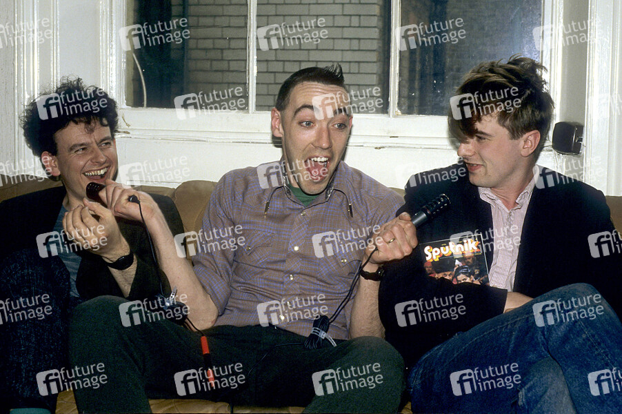 Kev Hopper, Mick Lynch und Chris Salmon von Stump bei einem Pressetermin im Büro ihrer Plattenfirma. London, 21.05.1987