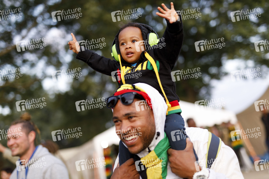 Rastafari, Flagge, Rasta, Ohrschutz, Lärmschutz, Kopfhörer, Dezibel, Lautstärke, Ohrenschützer, Jamaika, Summerjam 2019, Festival, Musik, Konzert, Auftritt, Bühne, live, Unterhaltung, Entertainment, Kultur Reggae-Festival, Chillen, Open Air, A Way of Life