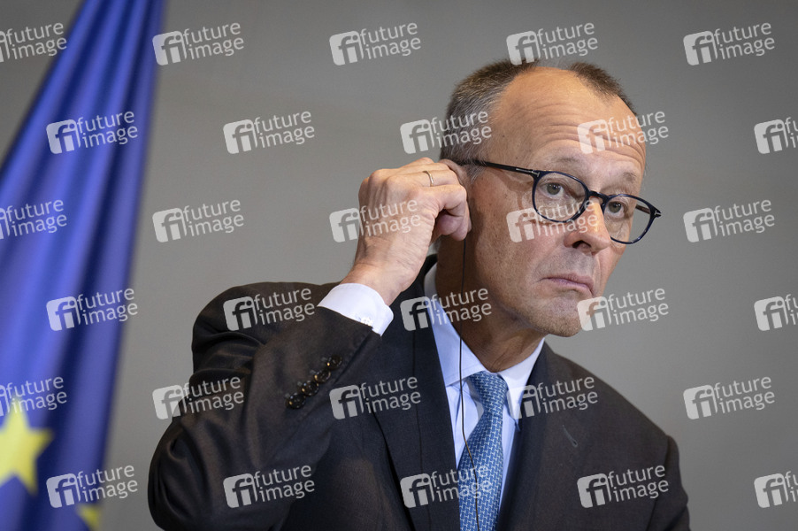 Friedrich Merz bei der Pressekonferenz nach der Unterzeichnung der bilateralen deutsch-schwedischen Innovationspartnerschaft im Bundeskanzleramt. Berlin, 19.11.2025