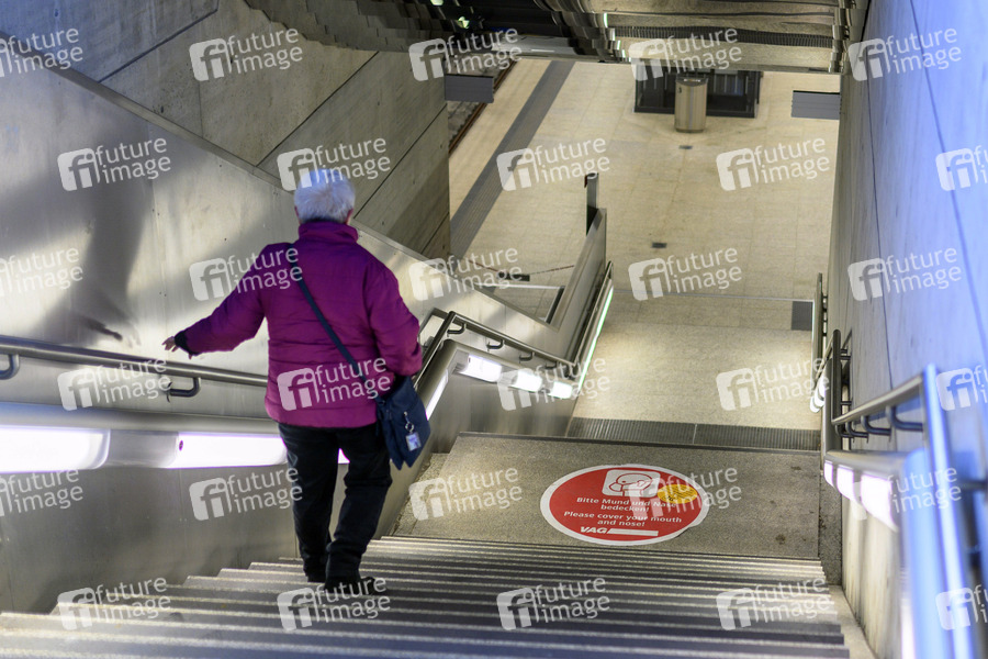 Nahverkehr, U-Bahn, U-Bahn-Haltestelle, Piktogramme, Maske tragen, 3G-Nachweis, 3G-Regel, geimpft, genesen, getestet, Corona, Corona-Regeln, Mindestabstand, Maskenpflicht, Infektionsschutz, Infektionsschutzgesetz, Bayern, öffentlicher Personennahverkehr, Mund-Nasen-Schutz, Mund-Nasen-Bedeckung, Bus, Bahn, Bahnen, ÖPNV, Symbolbild, Symbolfoto