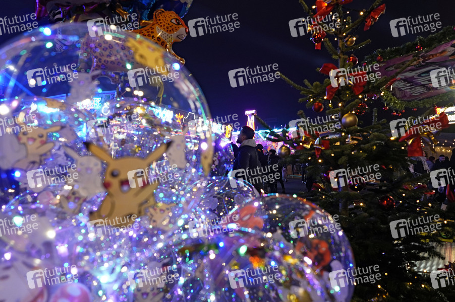 Pokemon-Ballons auf dem Weihnachtsmarkt 'Berliner Wintertraum' in der Schnellerstrasse im Bezirk Treptow-Köpenick. Berlin, 10.11.2024