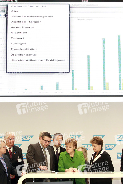 Eröffnungsrundgang von Bundeskanzlerin Merkel auf der CeBIT 2012 (Centrum der Büro- und Informationstechnik), der weltgrößten Messe für Informations- und Computertechnik auf dem Messegelände, Hannover - Am Messestand von SAP