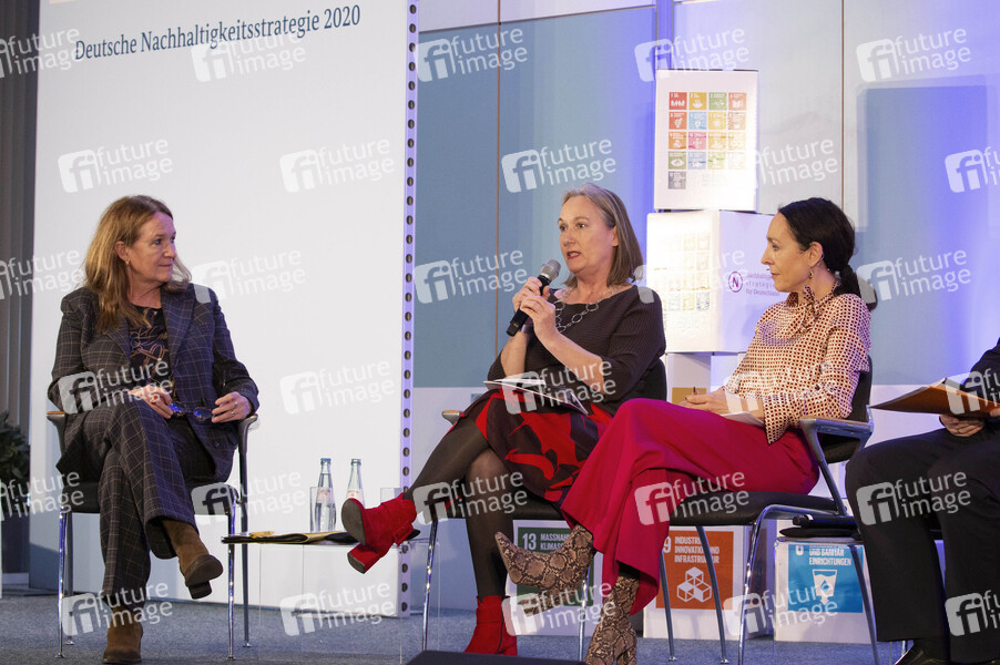 Ingrid-Gabriela Hoven, Anja Weber und Andrea Thilo bei der Nachhaltigkeitskonferenz zur Fortschreibung der Deutschen Nachhaltigkeitsstrategie im Gustav-Stresemann-Institut. Bonn, 19.02.2020