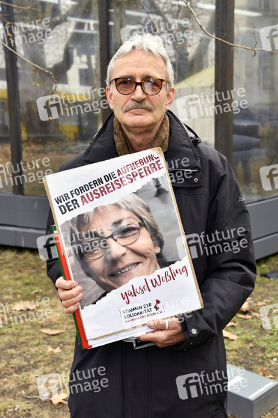 Jürgen Weßling (Ehemann von Yüksel Weßling) bei der Pressekonferenz des KulturForum TürkeiDeutschland zur Solidarität mit den gesamten demokratischen Kräften in der Türkei, insbesondere mit inhaftierten Schriftsteller*innen, Künstler*innen, Journalist*innen, Gewerkschafter*innen und Politiker*innen vor dem Maxim Gorki Theater. Berlin, 23.03.2021