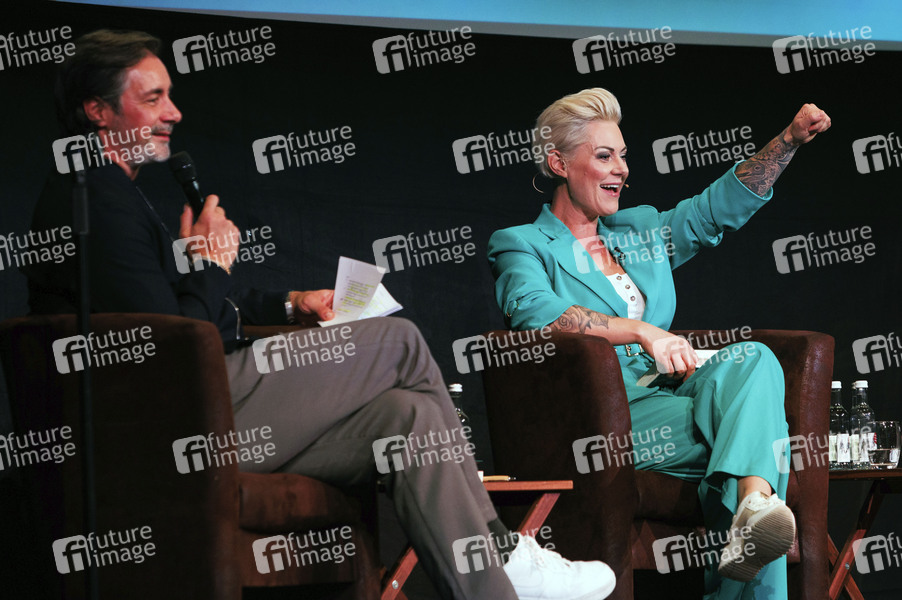 Carola Holzner mit Marco Schreyl bei der Premierenlesung ihres Buchs 'Ab unter die Gürtellinie · Medizin untenrum endlich verständlich' in der Volksbühne am Rudolfplatz. Köln, 10.10.2024