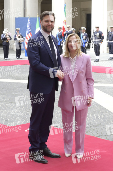 JD Vance und Giorgia Meloni beim Empfang des US-Vizepräsidenten im Palazzo Chigi. Rom, 18.04.2025