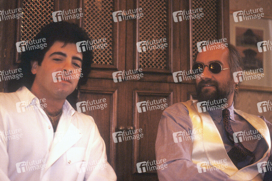 Billy Burnette und Mick Fleetwood von Fleetwood Mac bei einem Interview in einem Hotel. London, 15.09.1988
