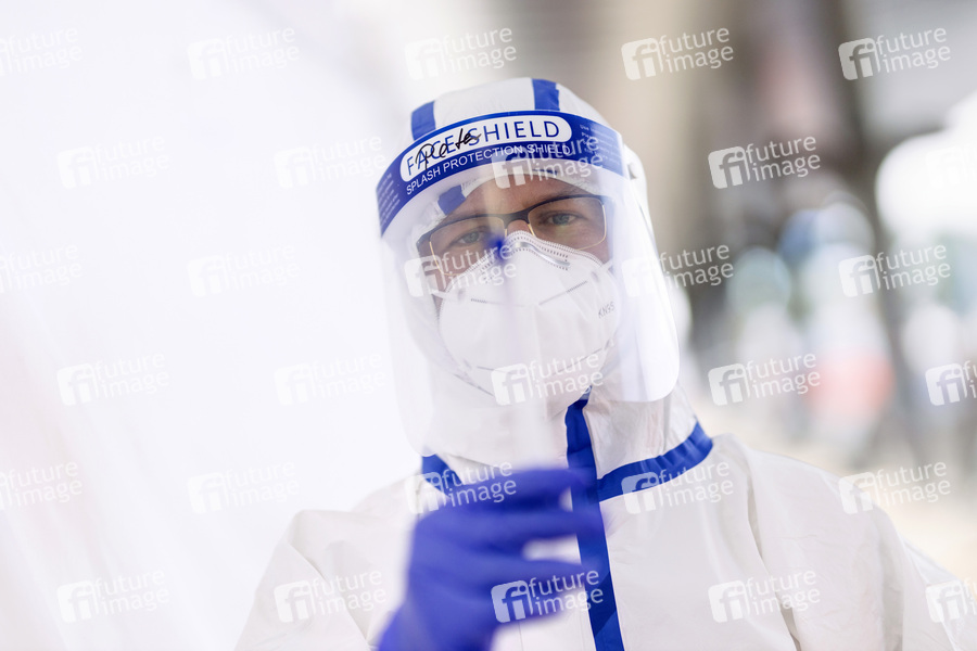 Wegen der Corona-Krise bzw. Corona-Pandemie werden im Corona-Testzentrum am Köln Bonn Airport Reiserückkehrer aus Risikogebieten auf Corona getestet. Köln, 11.08.2020