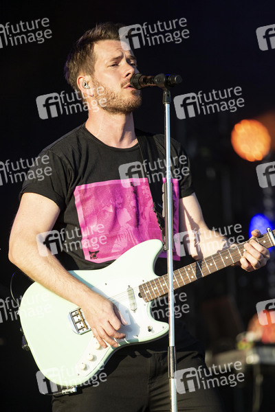 Johannes Strate von Revolverheld live bei einem Autokonzert an der Messe. Erfurt, 21.05.2020