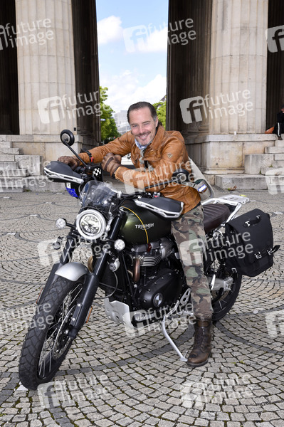 Schauspieler, Comedian, Erkan Maria Moosleitner, Erkan und Stefan, Motorrad, Triumph, Prominenz, Celebrity, Celebrities, Fotoshooting, Photoshooting, Fototermin, Unterhaltung, Entertainment
