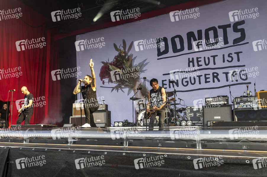 Alex Siedenbiedel, Ingo Knollmann und Guido Knollmann von den Donots live auf dem Domplatz. Erfurt, 18.08.2022