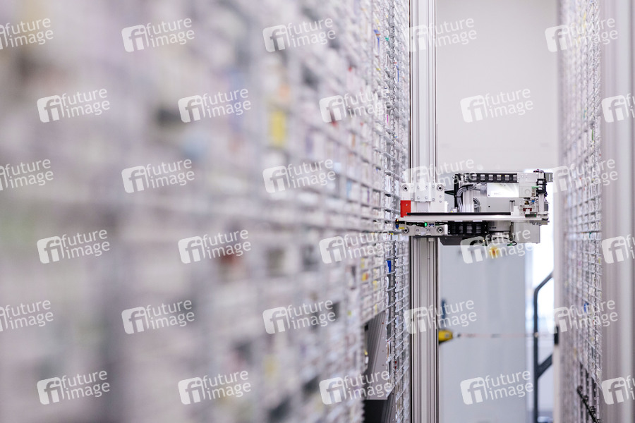 Im modernen Versorgungszentrum der Kronen-Apotheke Marxen OHG unterstützt der Roboter Knapp-Store die Mitarbeiter bei der Auswahl, Portionierung und Verteilung von Medikamenten für Krankenhäuser und Kliniken. In einem angrenzenden Labor mit Reinraum werden zudem Zytostatika für die Krebs-Therapie unter sterilen Bedingungen hergestellt. (Themenbild, Symbolbild) Wesseling, 27.05.2021