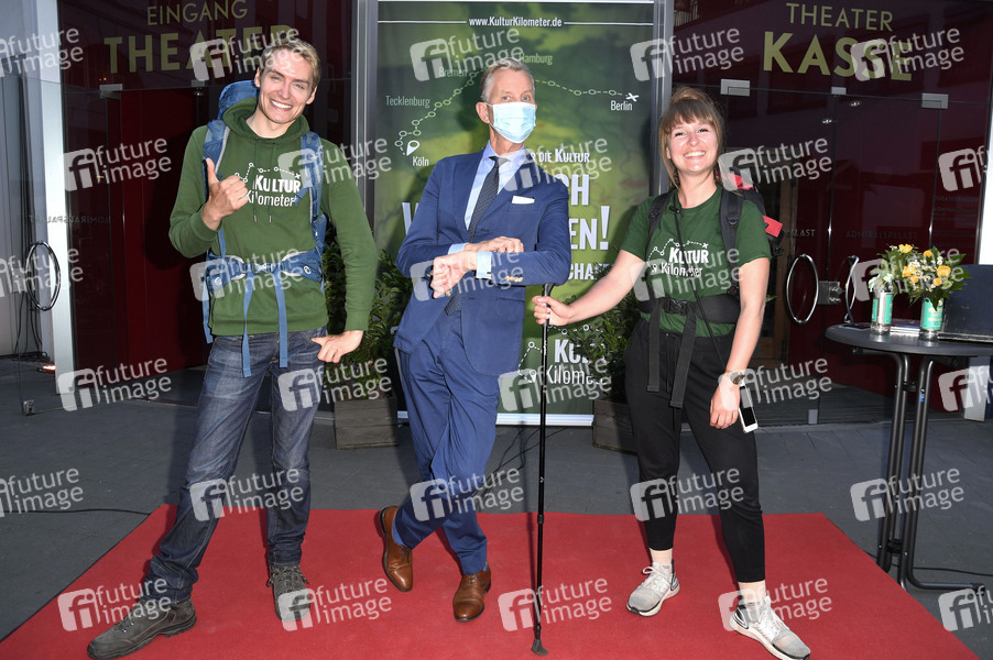Meik Gudermann, Max Raabe und Laura Kuhlen beim Fototermin zur Aktion '750 Kulturkilometer' von Köln nach Berlin, um die Menschen während der Corona-Krise für die aktuelle Problemlage der Kulturlandschaft zu sensibilisieren, im Admiralspalast. Berlin, 23.06.2020