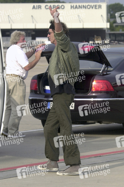 Keith Richards bei der Ankunft der Rolling Stones auf dem Flughafen Hannover-Langenhagen, 07.08.2003