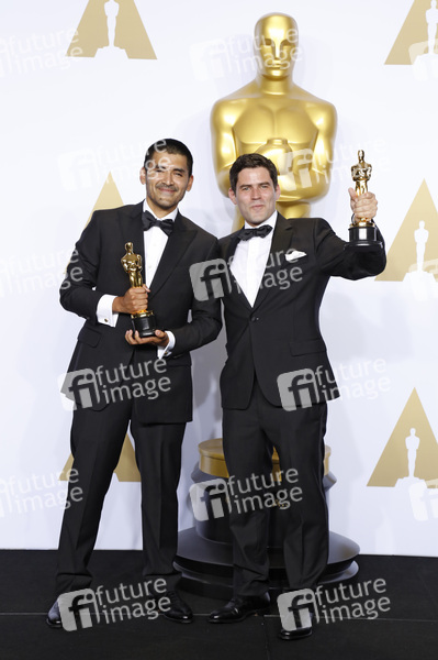 Gabriel Osorio Vargas und Pato Escala (Bester animierter Kurzfilm 'Bear Story') im Presseraum der Oscar Verleihung 2016 / 88th Academy Awards im Loews Hollywood Hotel. Los Angeles, 28.02.2016