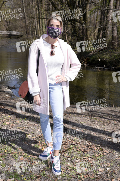 Moderatorin, Entertainment, Prominenz, Celebrities, Celebrity, Fotoshooting, Photoshooting, Coronakrise, Corona-Krise, Corona, Covid-19, Coronavirus, Coronaviren, Corona-Virus, Corona-Viren, Ausgangasbeschränkung, Ausgangsbeschränkungen, Coronamaßnahmen, Ansteckungsgefahr, Abstandhalten, Abstandsregel, Abstandsregeln, Vorbeugung, Prävention, Ausnahmezustand, Corona-Schutz, Maßnahmen, Coronamaßnahmen, Corona-Regeln, Corona-Maßnahmen, ausbleibende Kunden, geschlossene Geschäfte, Atemschutz, Atemschutzmaske, Virenschutz, Schutzmaske, Mundschutz, Mund-Schutz, Mund-Nase-Schutz, Mund-Nasen-Schutz, MNS