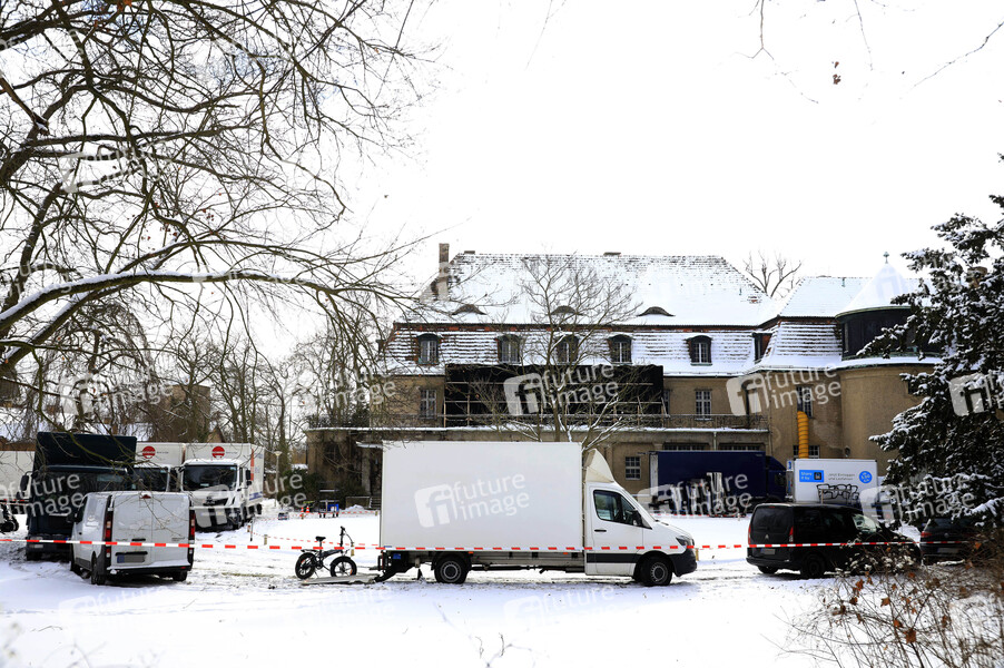 Das Schloss Marquardt ist für 2 Tage Drehort für den Film 'Spencer' mit Kristen Stewart in der Hauptrolle als Lady Diana. Potsdam, 11.02.2021