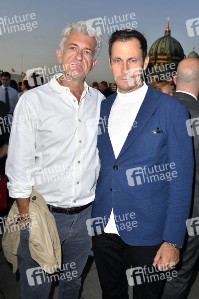 Dominic Raacke und Marc Hosemann beim Vorab-Empfang UFA Filmnächte 2019 auf der Dachterrasse der Bertelsmann-Repräsentanz. Berlin, 21.08.2019