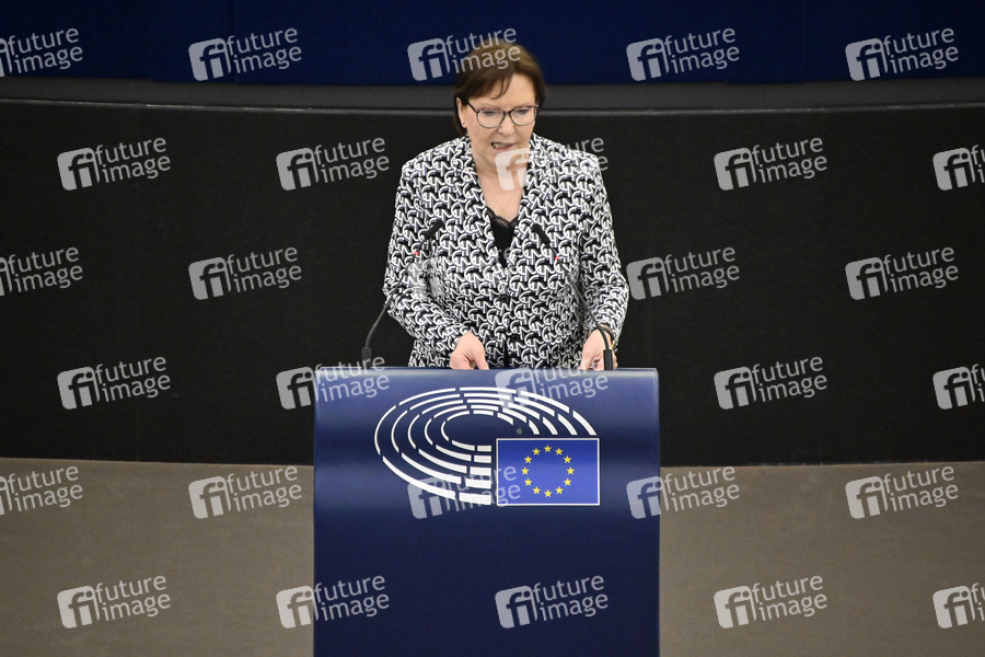 Ewa Kopacz bei einer Plenartagung zum Schutz von Kindern und jungen Menschen, die vor dem Krieg gegen die Ukraine fliehen, durch die EU im Plenarsaal des Europäischen Parlaments. Straßburg, 05.04.2022