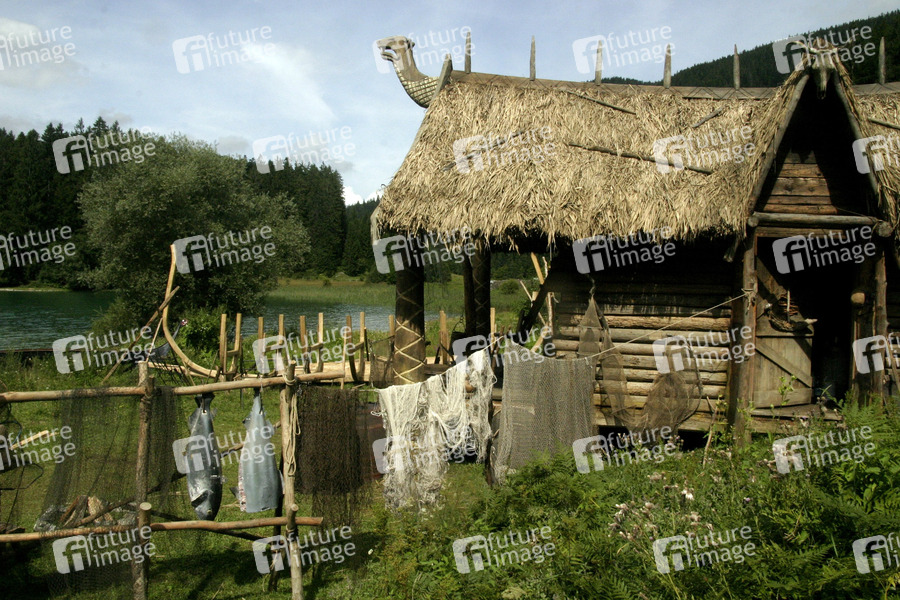 Am Filmset vom Michael 'Bully' Herbig Film 'Wickie und die starken Männer' am Walchensee in Oberbayern zwischen Garmisch und Bad Tölz. Das Wikingerdorf befindet sich in der Sachenbacher Bucht. Das Dorf bleibt nach den Dreharbeiten als Touristenattraktion stehen.