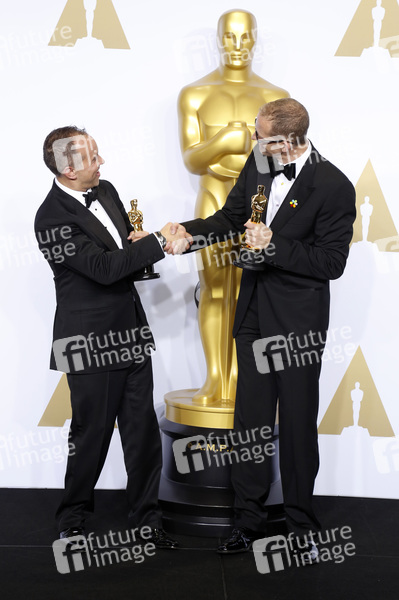 Jonas Rivera und Pete Docter (Bester Animationsfilm 'Alles steht Kopf / Inside Out') im Presseraum der Oscar Verleihung 2016 / 88th Academy Awards im Loews Hollywood Hotel. Los Angeles, 28.02.2016