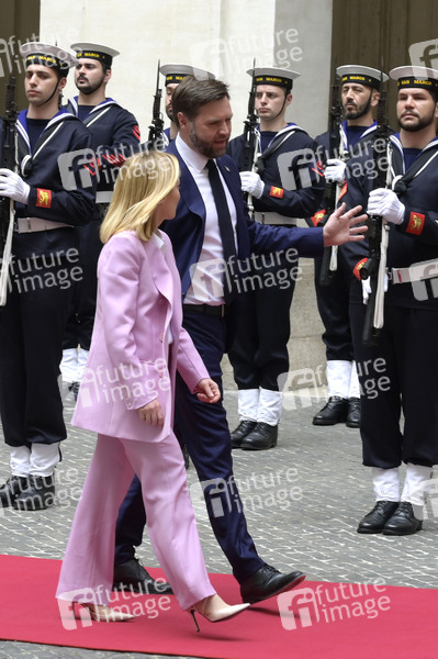 Giorgia Meloni und JD Vance beim Empfang des US-Vizepräsidenten im Palazzo Chigi. Rom, 18.04.2025