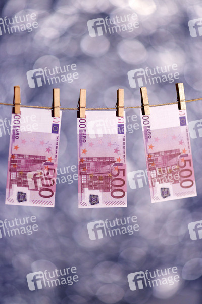 500-Euro-Scheine auf einer Wäscheleine. Köln, 15.01.2020