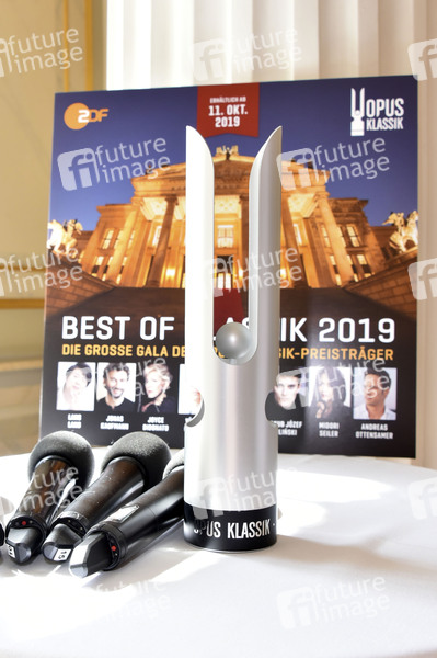 Die Trophäe bei der Pressekonferenz zur Bekanntgabe der Preisträger des Opus Klassik 2019 im Konzerthaus Berlin. Berlin, 02.09.2019