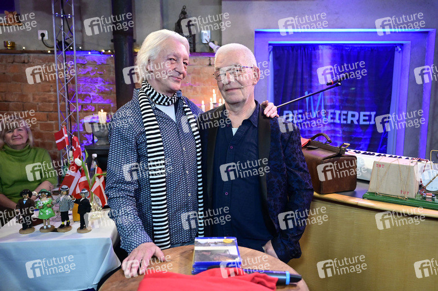Rainer König und Jes Holtsø in der MyTVplus TV Show 'Linda Total' in der Meierei. Radebeul, 23.01.2025