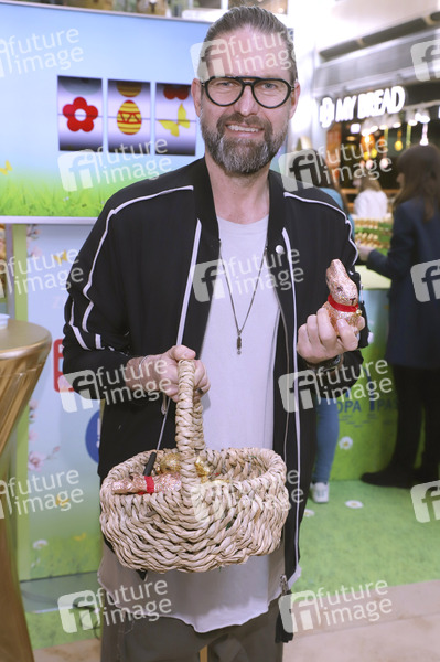 Kai Schwarz beim Charity Verkauf von 15.000 Lindt Osterhasen zu Gunsten der Budnianer Stiftung in der Europa Passage. Hamburg, 03.04.2025