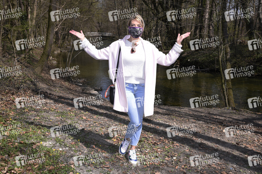Moderatorin, Entertainment, Prominenz, Celebrities, Celebrity, Fotoshooting, Photoshooting, Coronakrise, Corona-Krise, Corona, Covid-19, Coronavirus, Coronaviren, Corona-Virus, Corona-Viren, Ausgangasbeschränkung, Ausgangsbeschränkungen, Coronamaßnahmen, Ansteckungsgefahr, Abstandhalten, Abstandsregel, Abstandsregeln, Vorbeugung, Prävention, Ausnahmezustand, Corona-Schutz, Maßnahmen, Coronamaßnahmen, Corona-Regeln, Corona-Maßnahmen, ausbleibende Kunden, geschlossene Geschäfte, Atemschutz, Atemschutzmaske, Virenschutz, Schutzmaske, Mundschutz, Mund-Schutz, Mund-Nase-Schutz, Mund-Nasen-Schutz, MNS