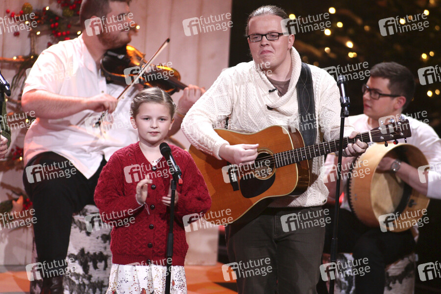 Angelo Kelly mit seiner Ehefrau Kira und ihren fünf gemeinsamen Kindern bei der Aufzeichnung der ZDF Weihnachts-Show 'Heiligabend mit Carmen Nebel' in den Bavaria Studios. München, 26.11.2015