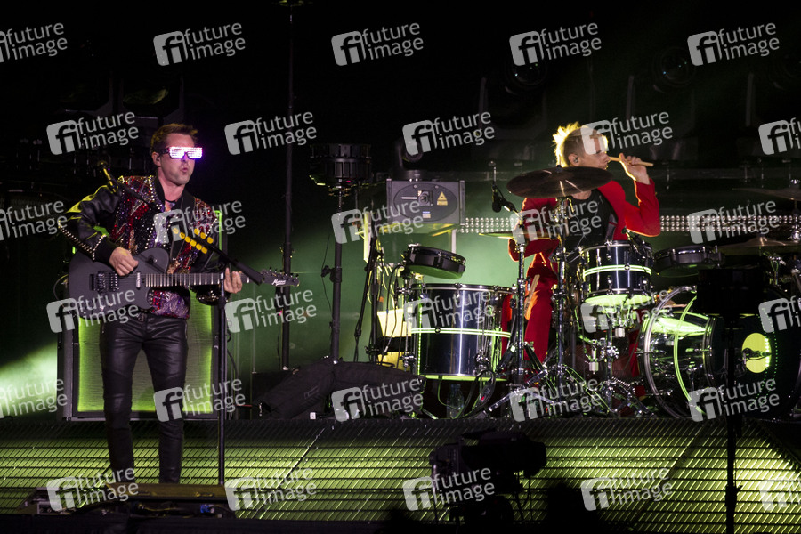Matthew Bellamy und Dominic Howard von Muse live bei einem Konzert der 'Simulation Theory World Tour' im Wanda Metropolitano Stadion. Madrid, 26.07.2019
