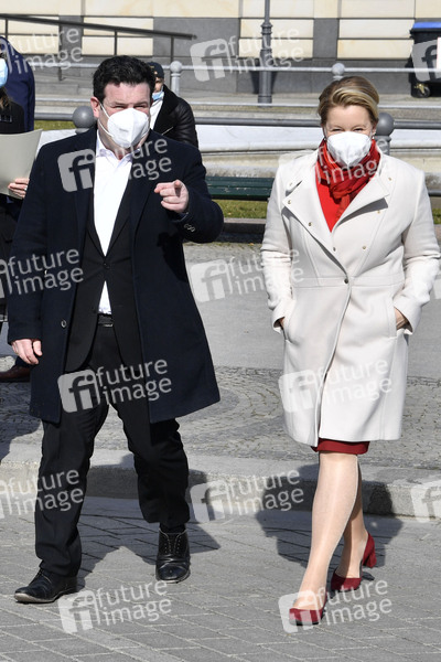 Hubertus Heil und Franziska Giffey bei der DGB-Aktion zum Equal Pay Day vor dem Brandenburger Tor. Berlin, 10.03.2021