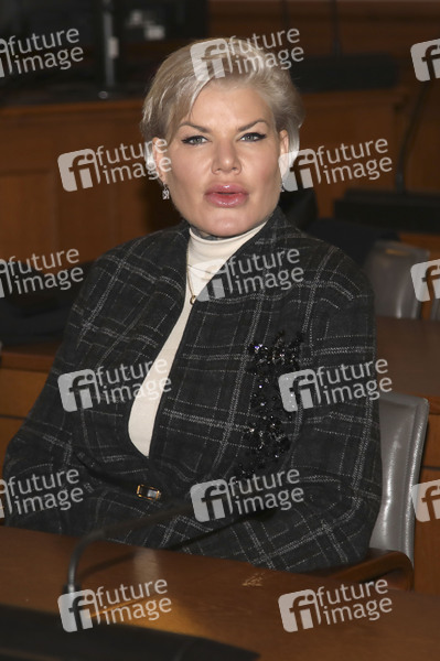 Melanie Müller beim Berufungsprozess wegen Verwendens von Kennzeichen verfassungswidriger und terroristischer Organisationen im Amtsgericht Leipzig. Leipzig, 18.12.2025