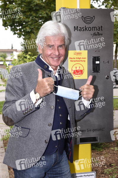 Frederic Meisner bei der Präsentation des ersten Flavura Maskomaten in München vor der Netto-Filiale in Aubing. München, 17.06.2020
