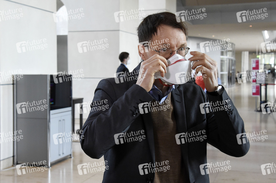 Karl Lauterbach beim Pressestatement nach der Befragung der Bundesregierung in der 217. Sitzung des Deutschen Bundestages im Reichstagsgebäude. Berlin, 24.03.2021