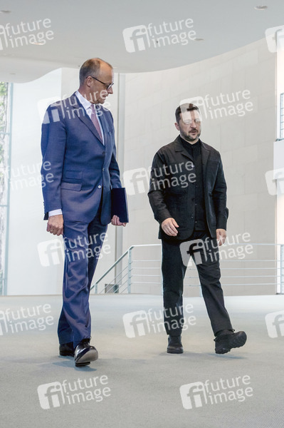 Friedrich Merz und Wolodymyr Selenskyj beim Empfang des Präsidenten der Ukraine mit militärischen Ehren und zu einem gemeinsamen Gespräch mit dem Bundeskanzler mit anschließendem Pressestatement im Bundeskanzleramt. Berlin, 28.05.2025