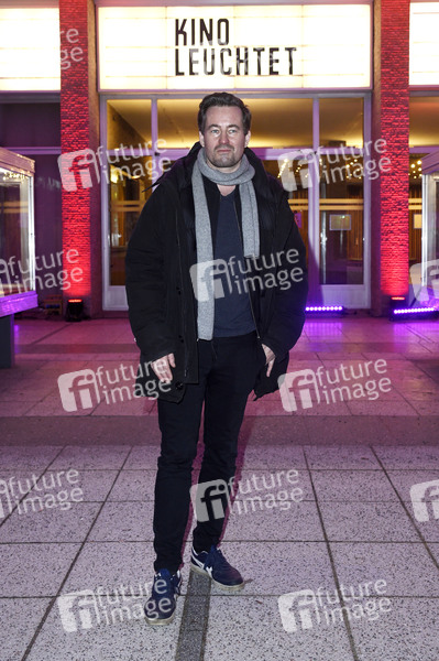Christian Schwochow vor dem Kino International bei der Aktion 'Kino leuchtet. Für dich.' anlässlich der nur für die Fachwelt virtuell stattfindenden Berlinale und im Hinblick auf die Beratungen der Regierungschef:innen von Bund und Ländern über den Stufenplan zur Wiedereröffnung mit Blick auf die immer noch geschlossenen Kulturorte. Berlin, 28.02.2021