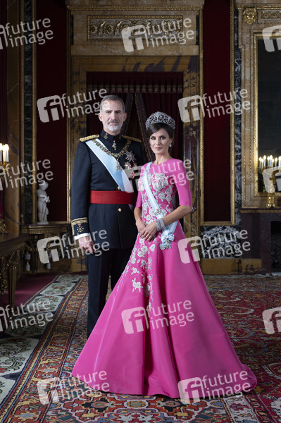 König Felipe VI. von Spanien und Königin Letizia von Spanien beim offiziellen Fototermin der spanischen Königsfamilie. Madrid, 11.02.2020