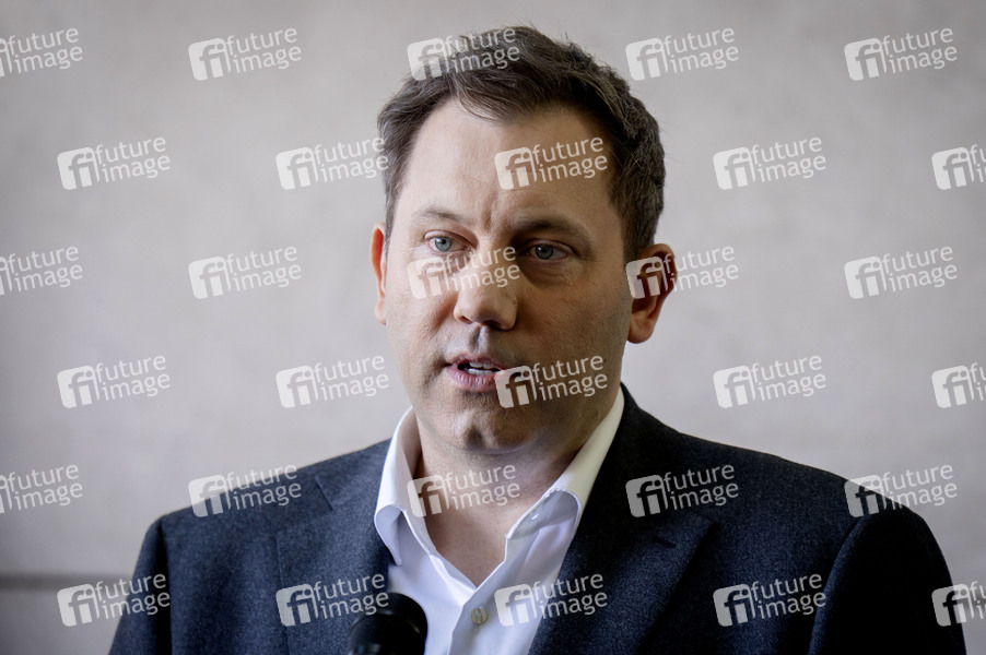 Lars Klingbeil beim gemeinsamen Auftaktstatement der Parteivorsitzenden von CDU, CSU und SPD zur Bildung einer neuen Regierungskoalition im Willy-Brandt-Haus. Berlin, 28.03.2025