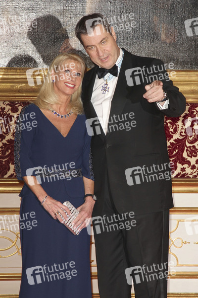 Markus Söder mit Ehefrau Karin Baumüller-Söder beim Neujahrsempfang des Bayerischen Ministerpräsidenten 2020 im Kaisersaal der Residenz. München, 10.01.2020