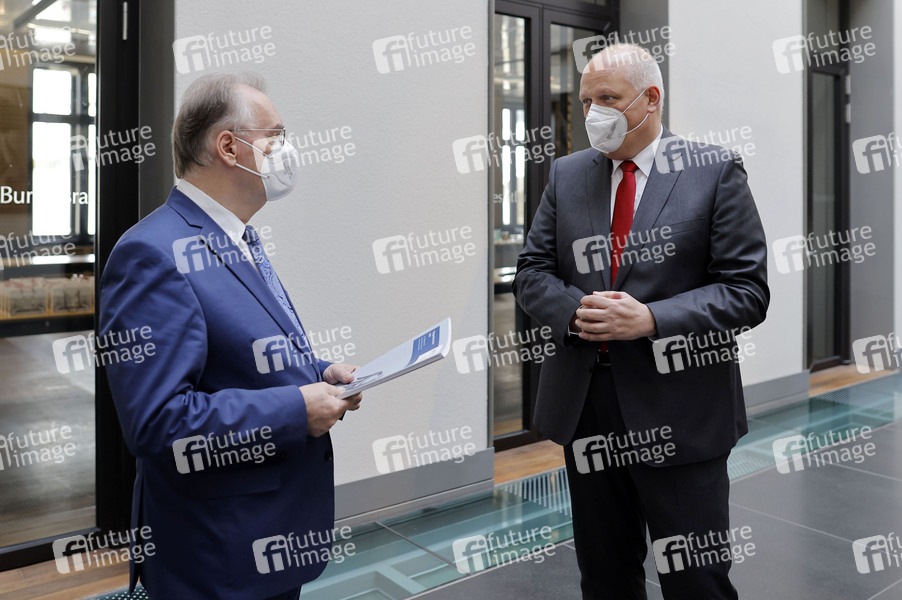 Bundesratspräsident Reiner Haseloff empfängt den Bundesbeauftragten für den Datenschutz und die Informationsfreiheit Ulrich Kelber im Bundesrat. Kelber wird am Rande der Plenarsitzung den 29. Tätigkeitsbericht zum Datenschutz an den Bundesratspräsidenten überreichen. Berlin, 26.03.2021