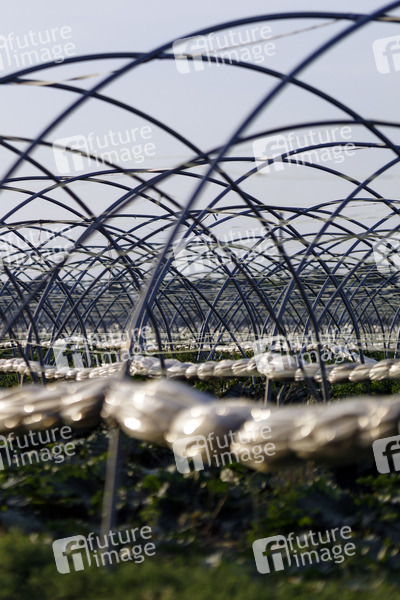 Rhabarber, Rheum rhabarbarum, Plantage, Ackerbau, Landwirtschaft, Gemüse, Folientunnel, Foliendach, Rhabarberplantage, Gewächshaus, Anbau, Acker, Ernte, Rhabarberstangen, Bauernhof, Knöterich, Knöterichgewächse, Bewirtschaftung, Photosynthese, Fotosynthese, Kultivierung, Pflanzung, Pfllanzenaufzucht, Selbstversorger, Standort, Bewässerung, Garten, Nutzgarten, Gartenbau, Symbolbild, Symbolfoto