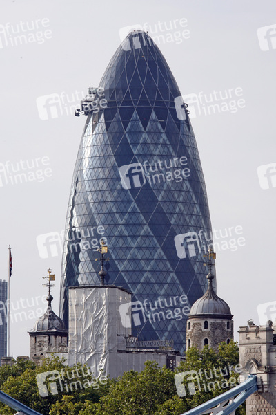 Wolkenkratzer, Höhe 180 Meter, Architekten Ken Shuttleworth und Sir Norman Foster, erbaut 2001 bis 2004, Büroturm des Rückversicherers Swiss Re, 40 Stockwerke