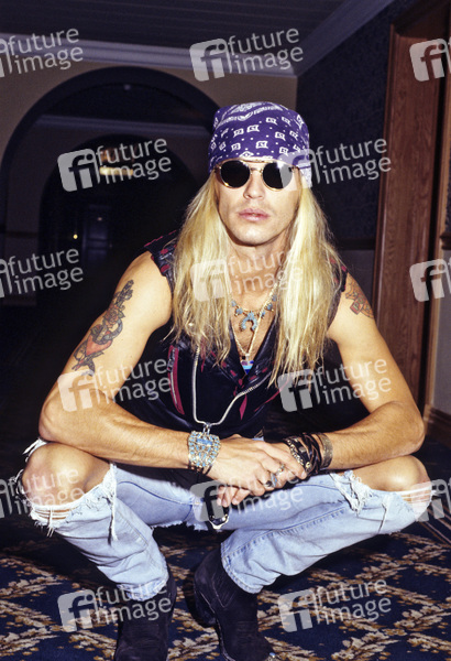 Bret Michaels von Poison bei einem Photoshooting in einem Hotel. London, 18.05.1991